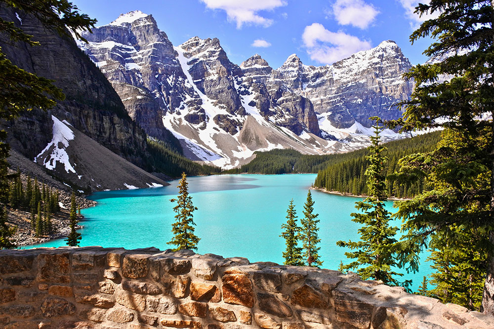 夢蓮湖是加拿大班芙國家公園的一個冰川湖,坐落在著名的十峰穀中,湖底積滿了富含礦物質的碎石,經年累月的沉積形成了變幻多姿的碧藍色湖水,被公認為是世界上最有拍照價值的湖泊,湖面呈寶石藍色,晶瑩剔透,像是一顆璀璨的明珠。