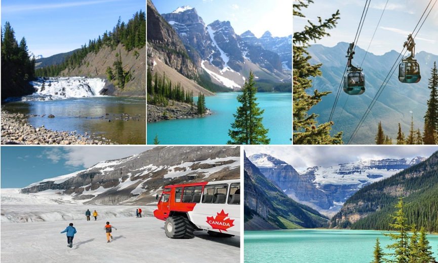 班芙→硫磺山纜車→露易絲湖村→露易絲湖→夢蓮湖(季節性)→途經冰川國家公園→灰熊鎮/鮭魚灣