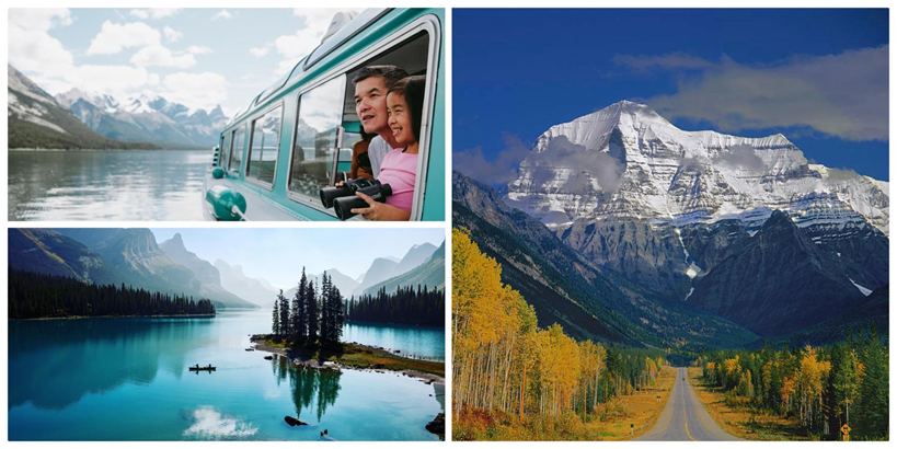 【夢蓮湖 Moraine Lake】(6-9月)位於十峰谷中,湖面呈寶石藍色,晶瑩剔透,是世界公認最具拍照價值的湖泊之一。若遇晴朗無風,湖面如鏡,十峰倒影清晰可見;建議準備保暖外套,山區氣溫變化大。