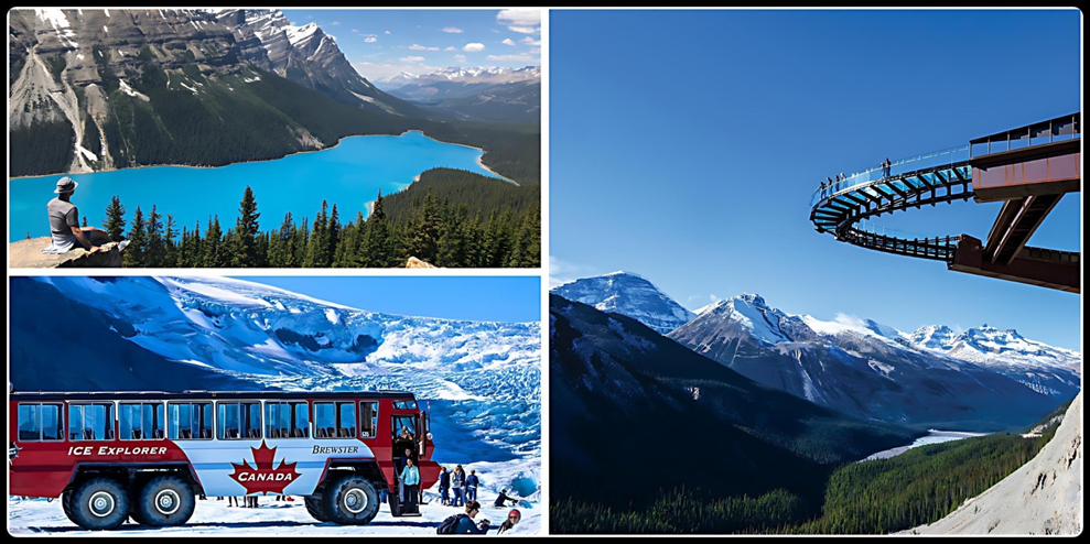 班芙小鎮→93號冰原大道→鴉抓冰川→弓湖→賈斯柏國家公園→哥倫比亞冰川→冰原雪車→返回灰熊鎮/鮭魚灣