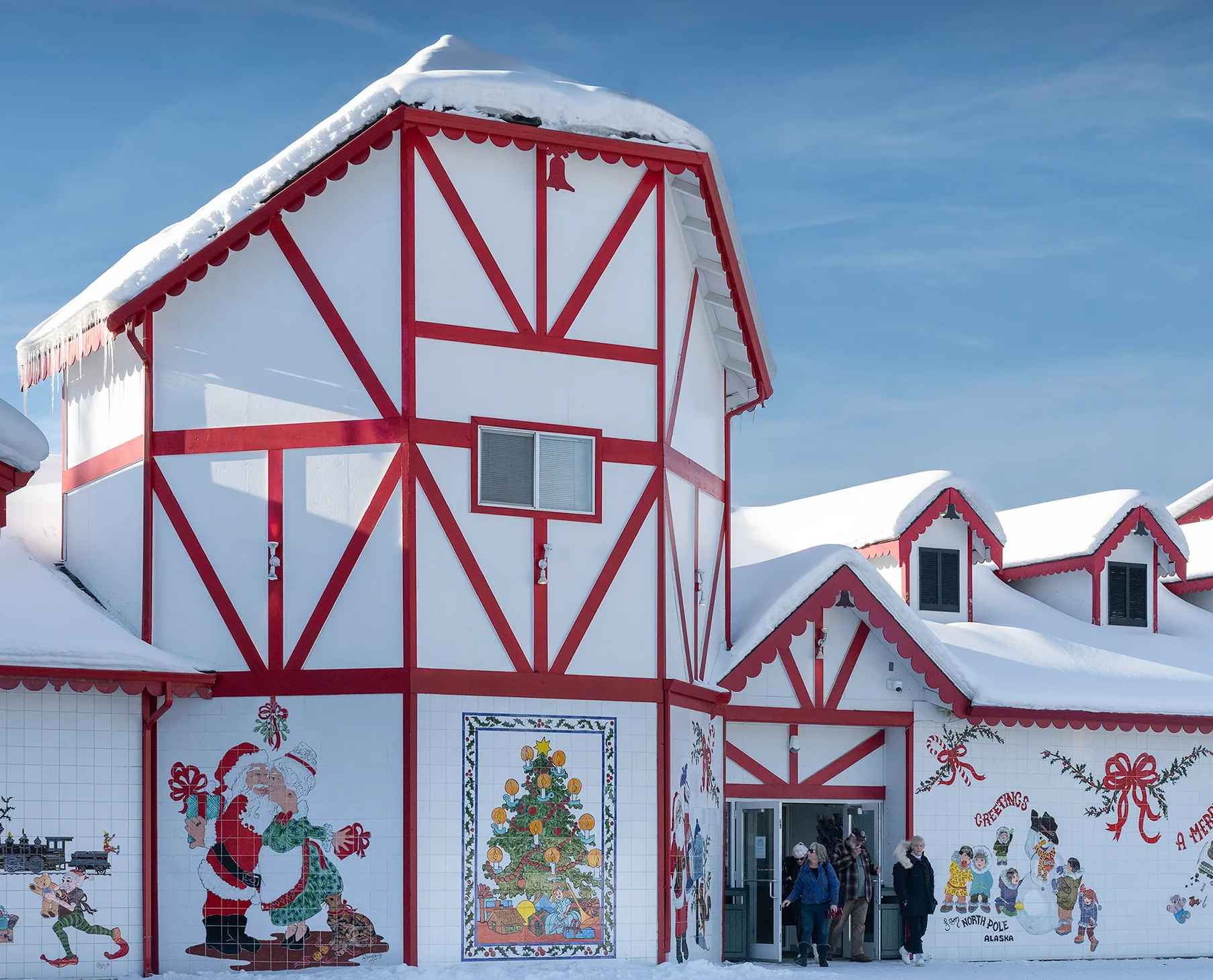 【聖誕老人之家 Santa Claus House】走在北極村的街道上,彷彿走在童話世界裡,路燈都是紅白相間的糖果棒的形狀,就連小鎮的救護車和警車,用的都是聖誕節的兩種經典顏色——紅色和綠色。當地最主要的一條大街也被叫做“叮噹大街”,這個名字源自聖誕老人滑著雪橇經過時鈴鐺叮叮噹噹的響聲。這裡的16 公尺高的巨大聖誕老人雕像、2 公尺高的北極熊和麋鹿、及許多的聖誕樹都很適合拍照留念。您也可以寄上一張來自北極的明信片。冬季北極村的聖誕老人小屋只在固定時間開門,如遇聖誕老人小屋關門,您將在北極小鎮(North Pole)參觀。