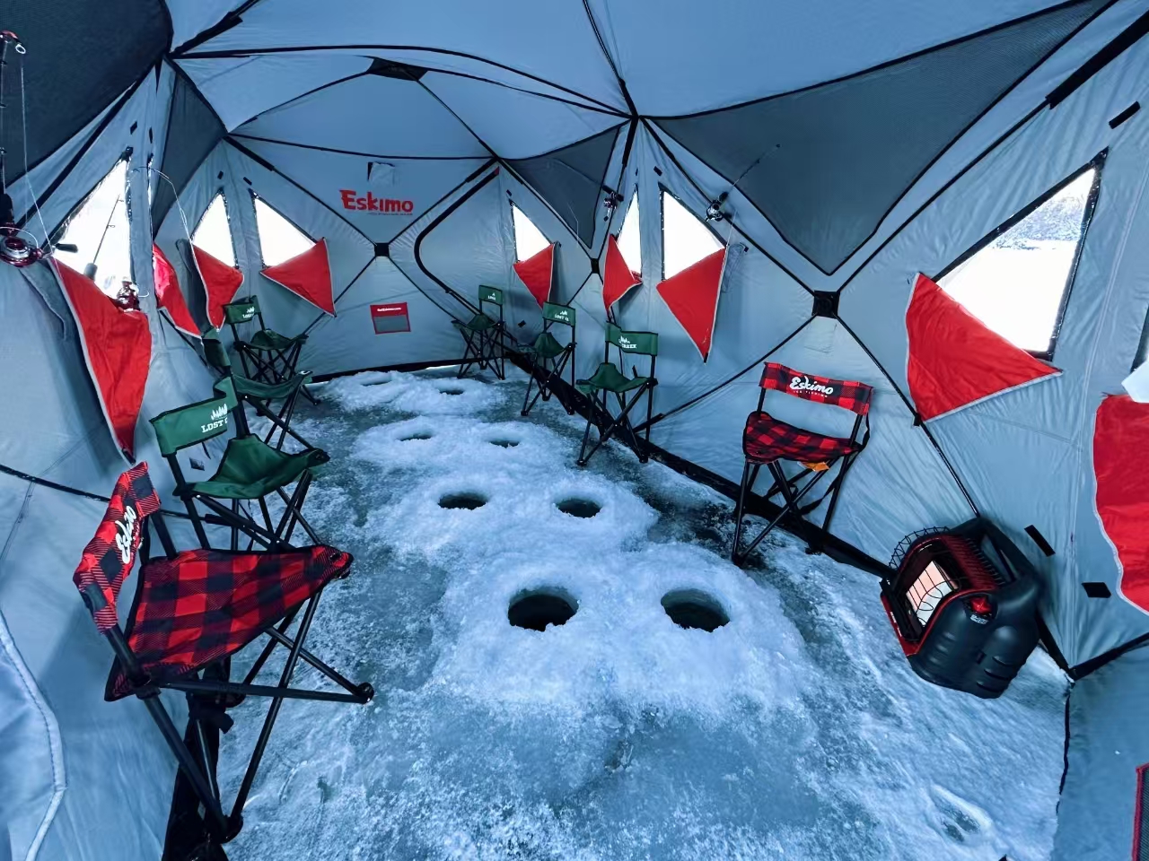 【帳篷冰湖釣魚】在阿拉斯加,每年11 月底到隔年的3 月,江河湖泊封凍,一般在冰的厚度達到8~10 公分時,即可冰釣。由於水溫很低,魚的生理活動受影響較大,處於半睡眠狀態,對外界影響的反應比較遲鈍,所以警覺性較低,再加上有冰層覆蓋,減少了外界變化對魚群的影響。在冰封的湖面上,我們特別為您搭建了帳篷,準備了暖爐,以躲避阿拉斯加冬日刺骨的寒風。在依山傍水的湖面上,一邊欣賞美麗的自然風光,呼吸最潔淨的空氣,享受幽靜平和的自然環境。您可以跟隨經驗豐富的冰釣導遊學習釣魚技巧,體驗不一樣的冬季活動。如果您幸運的釣上魚貨,我們可以協助您將您的戰利品現場燒烤,現場品嚐。出發時間以導覽通知為準,乘車30 分鐘(取決於即時路況)抵達冰湖釣魚湖面。開始您3 小時的有趣體驗,學習如何掛餌,如何放線,體驗並掌握因紐特人獨特的冰釣技巧。